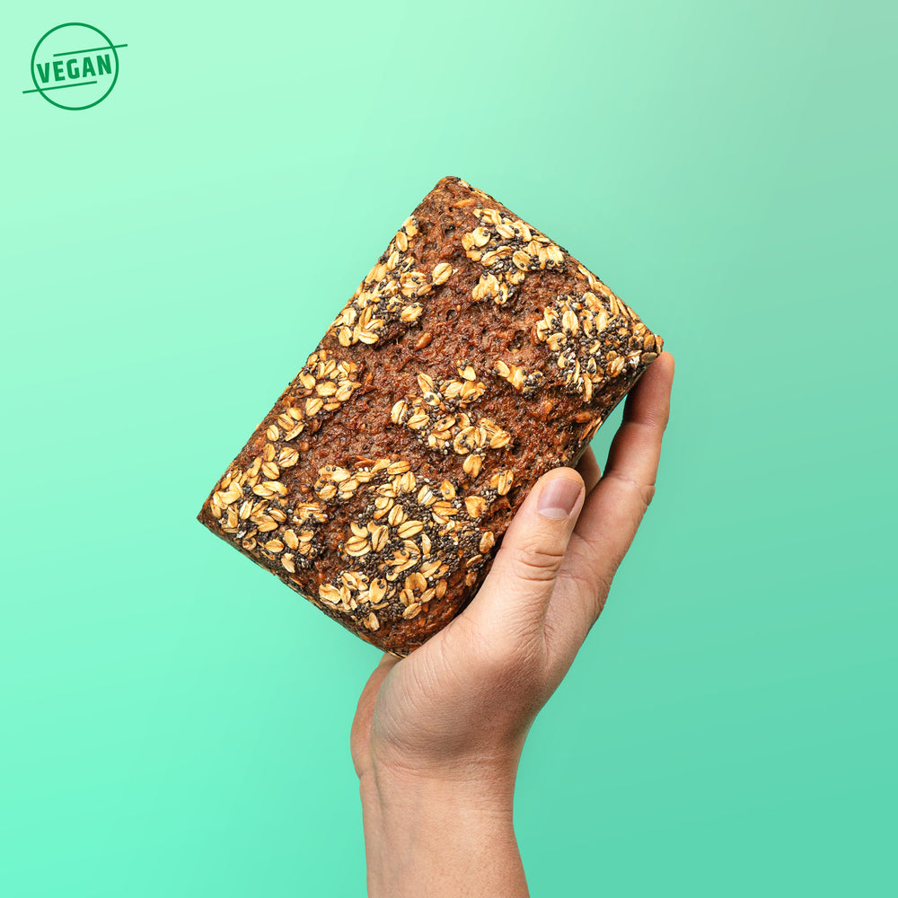 Das saftige Vollkornbrot besteht aus Dinkel, Roggen und Hafer. Das 700 Gramm Brot ist mit jeder Menge Sonnenblumenkernen dekoriert und wird bei uns jede Nacht für euch im Kasten gebacken.